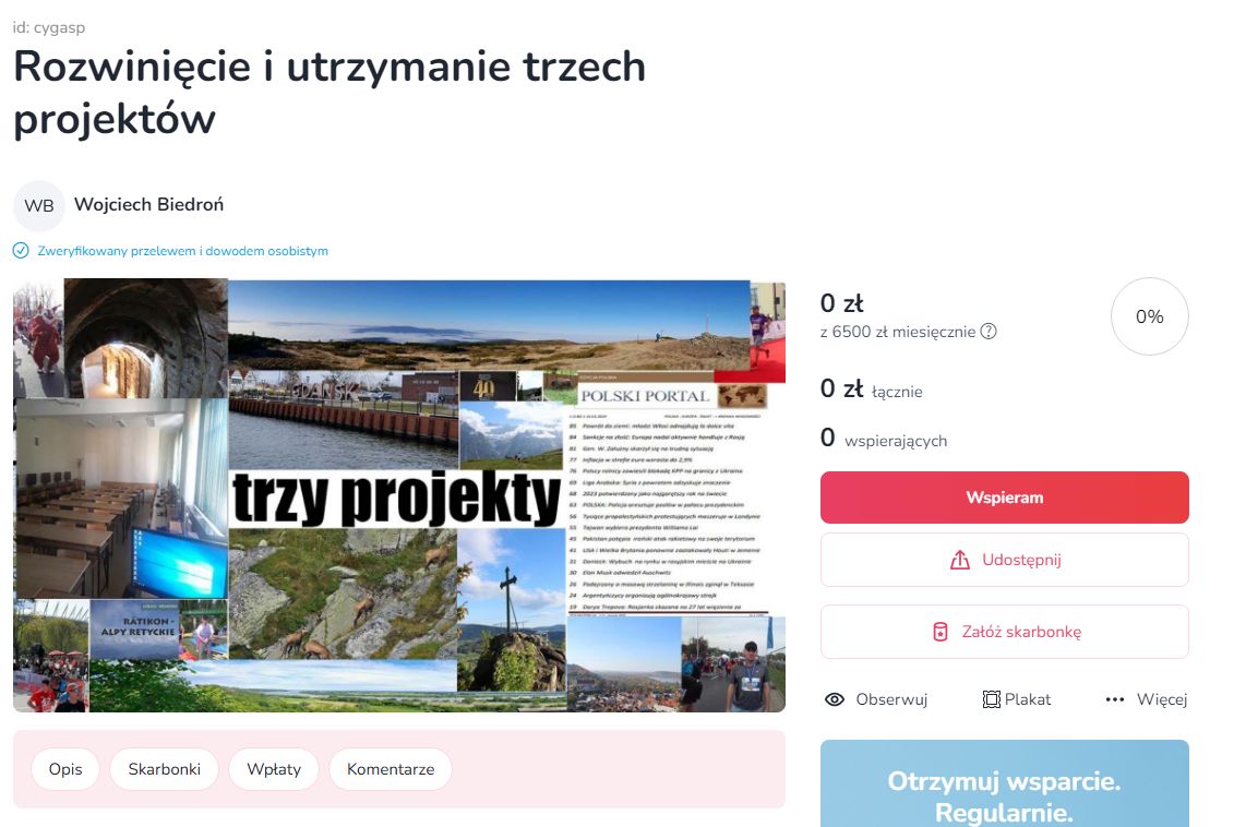 Wsparcie Projektu za pomocą wpłat na zrzutka.pl