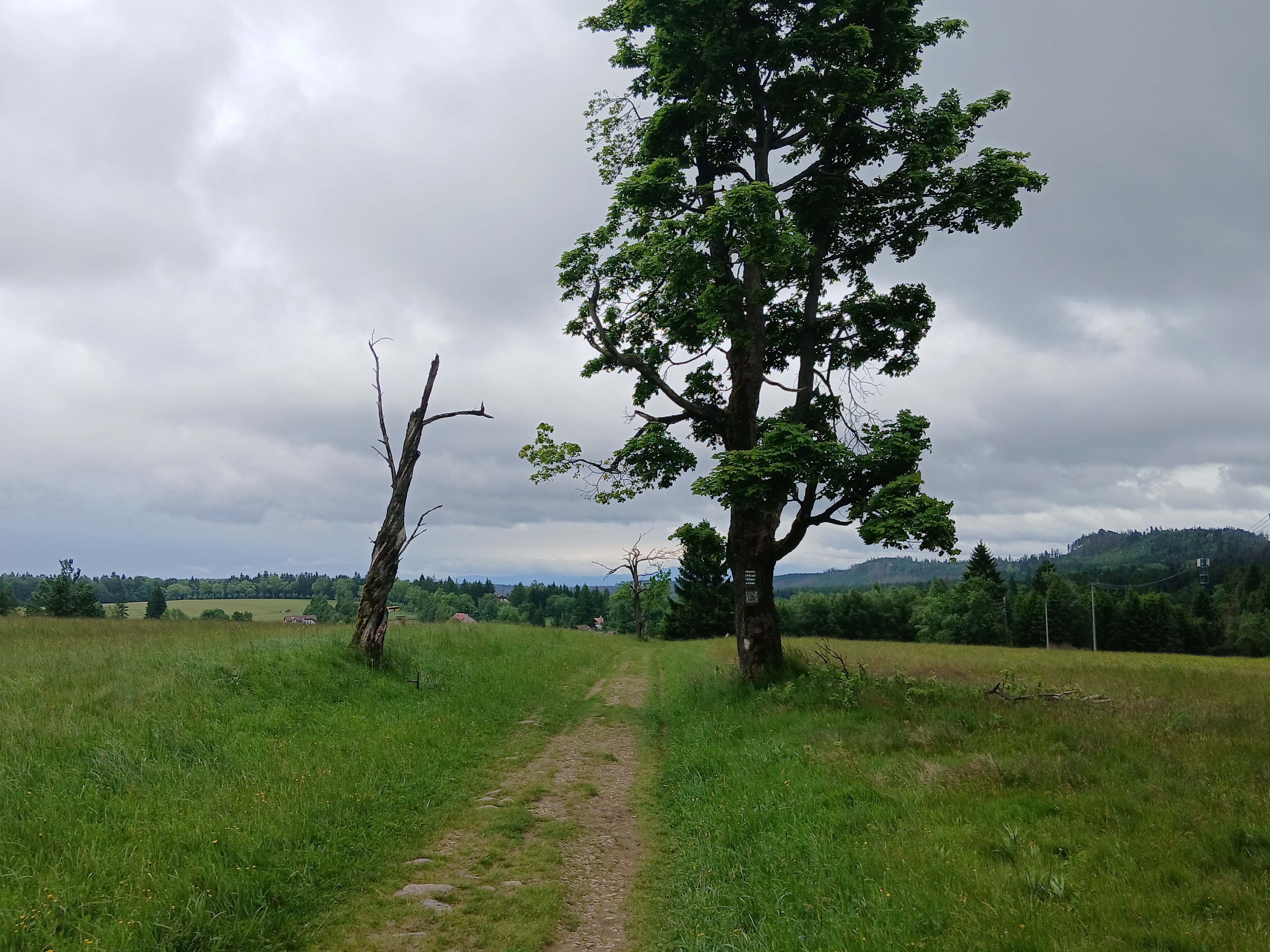 W oddali w punkcie cantralnym widać masyw Szczelińca
