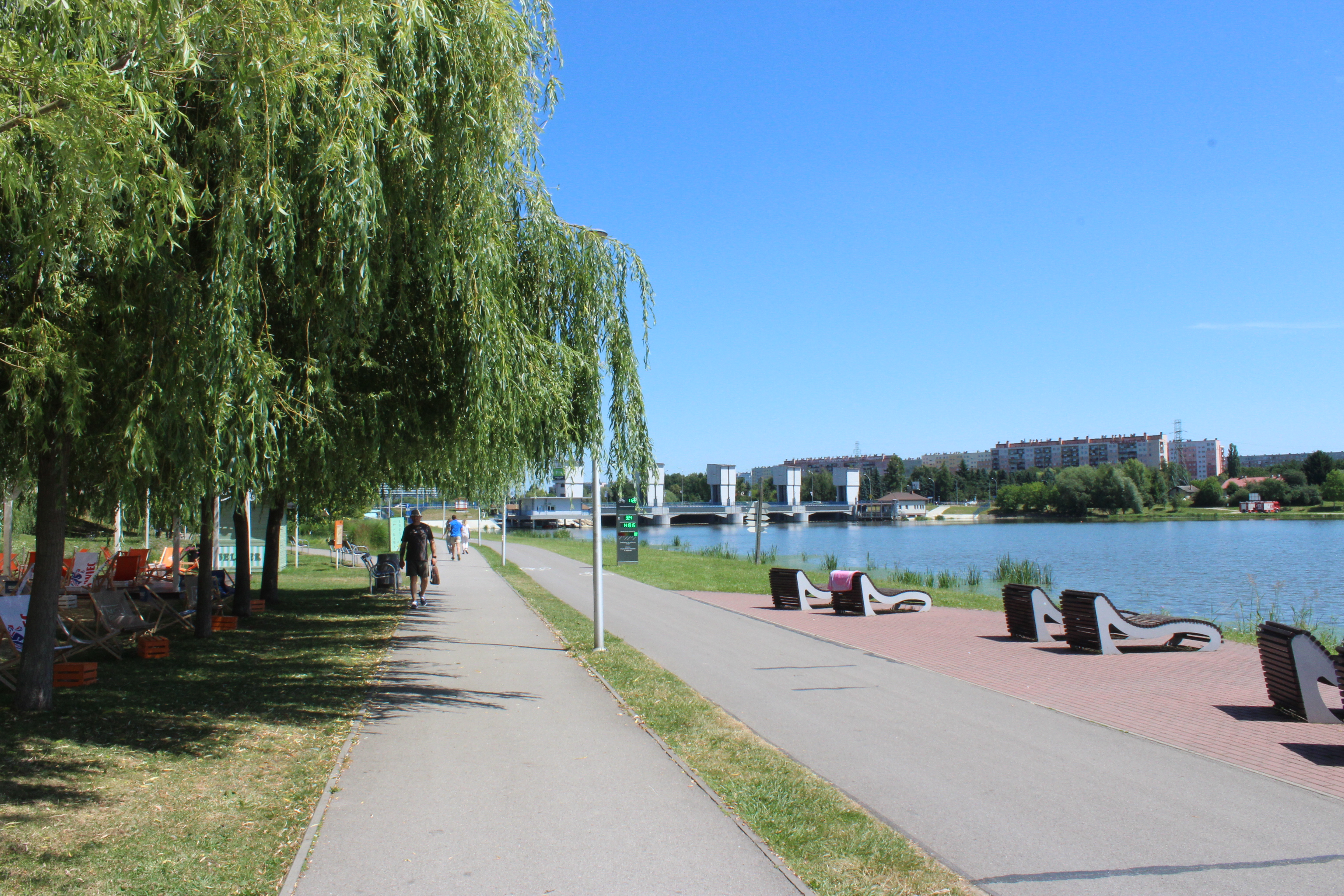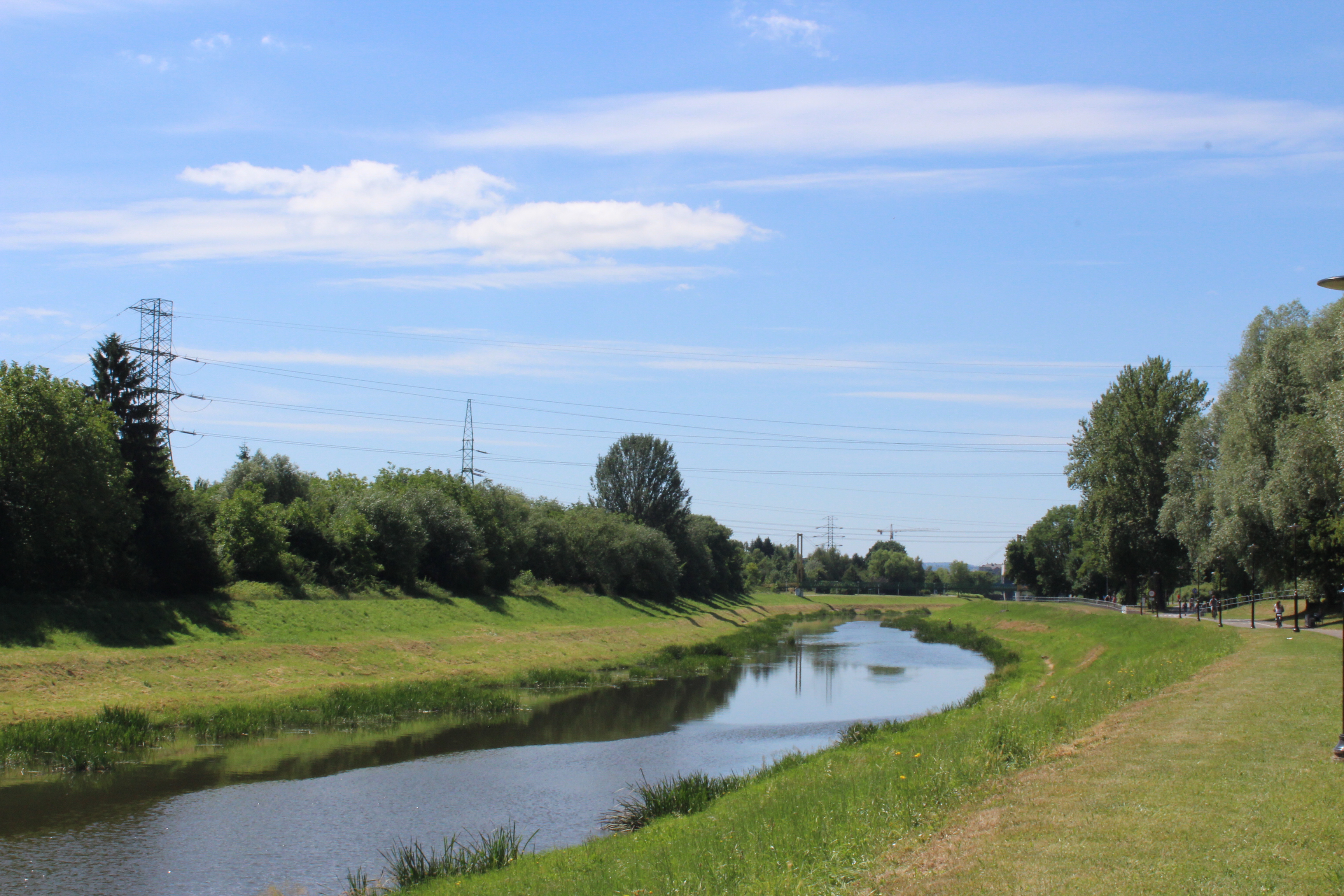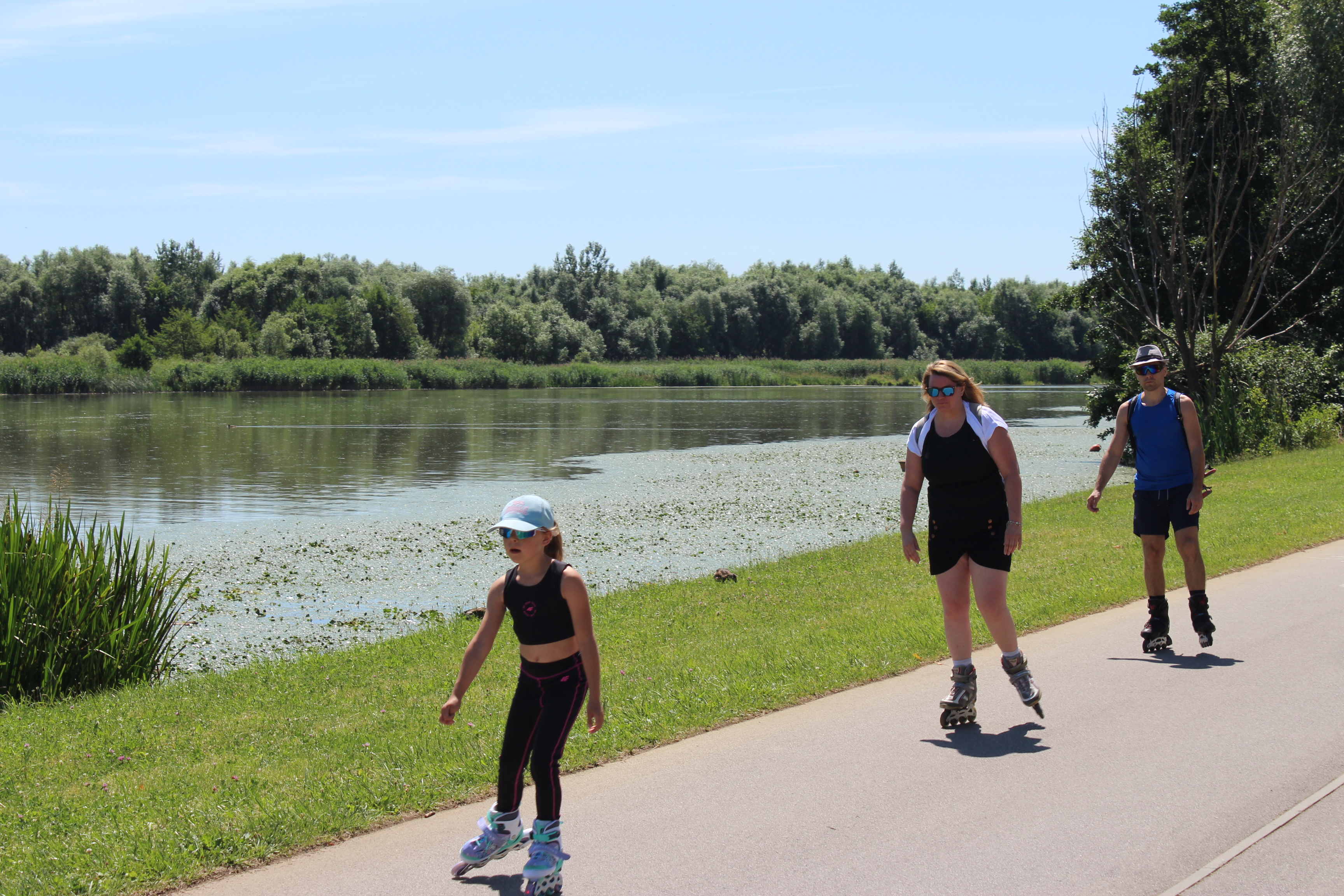 Trasa wzdłuż rzeki ma wydzielone dwa pasy dla pieszych i "jeżdzących"