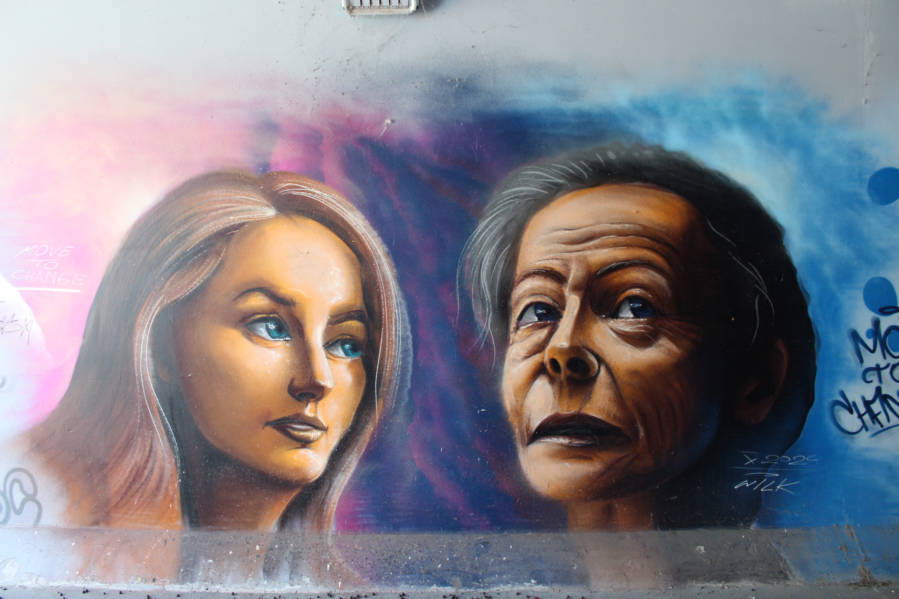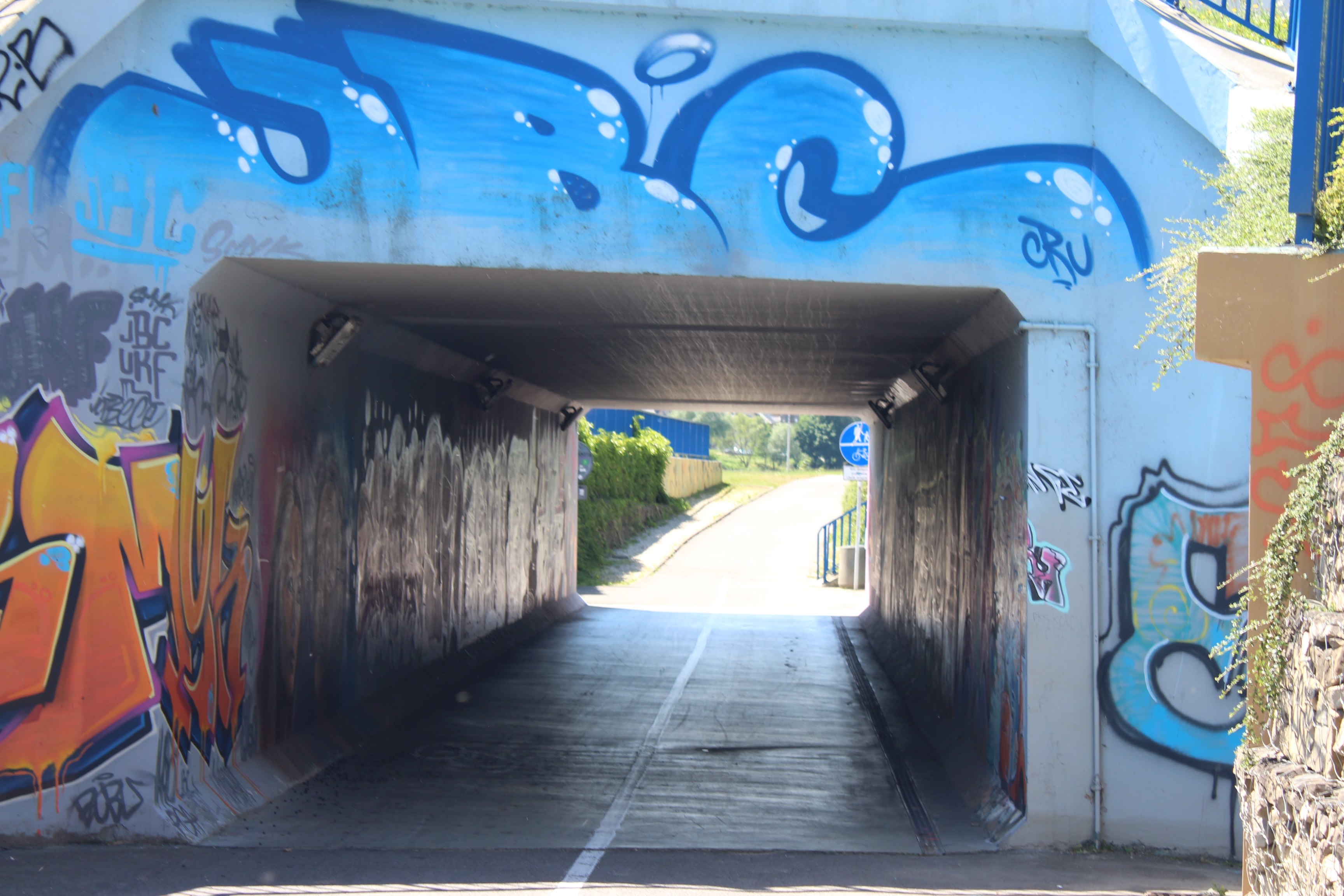 Jedno z graffiti zdobiące przejeście dla pieszych pod mostem