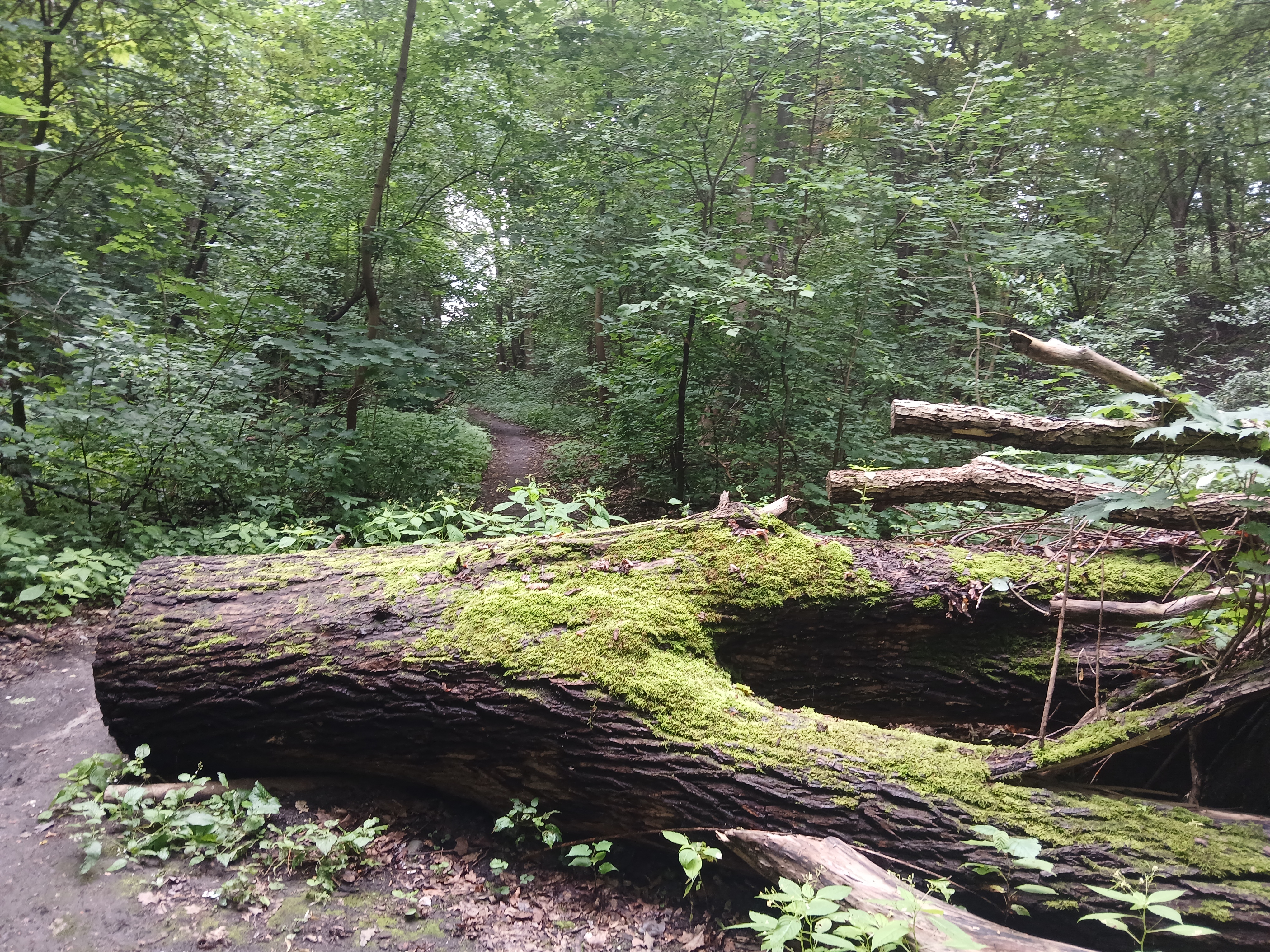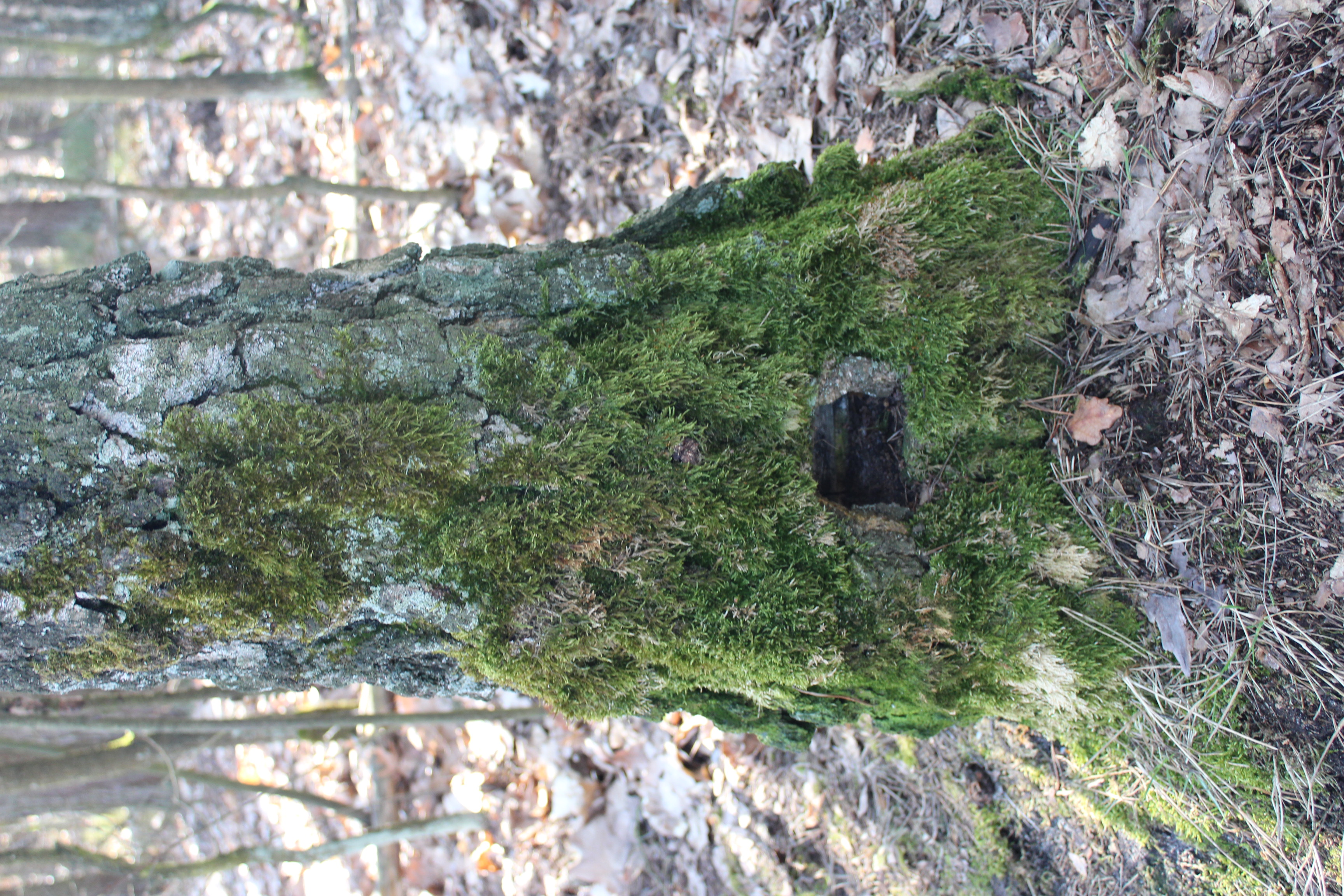 Dziwaczna dziupla porośnięta mchem, który aż bije po oczach swoją zielonością