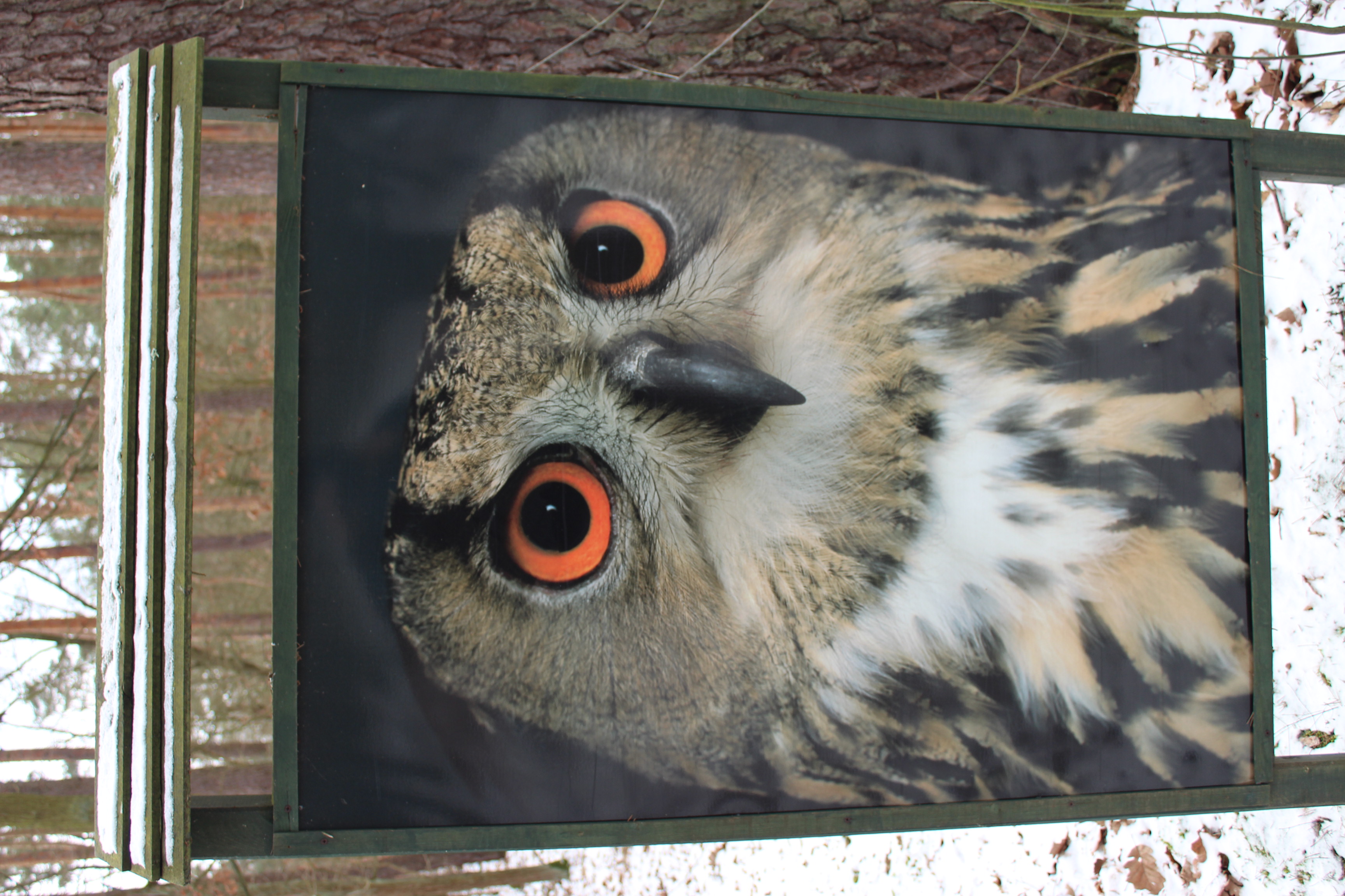 Jest też galeria mieszkańców Puszczy autorstwa Marka Kalinowskiego, sowa przygląda się naszej grupie
