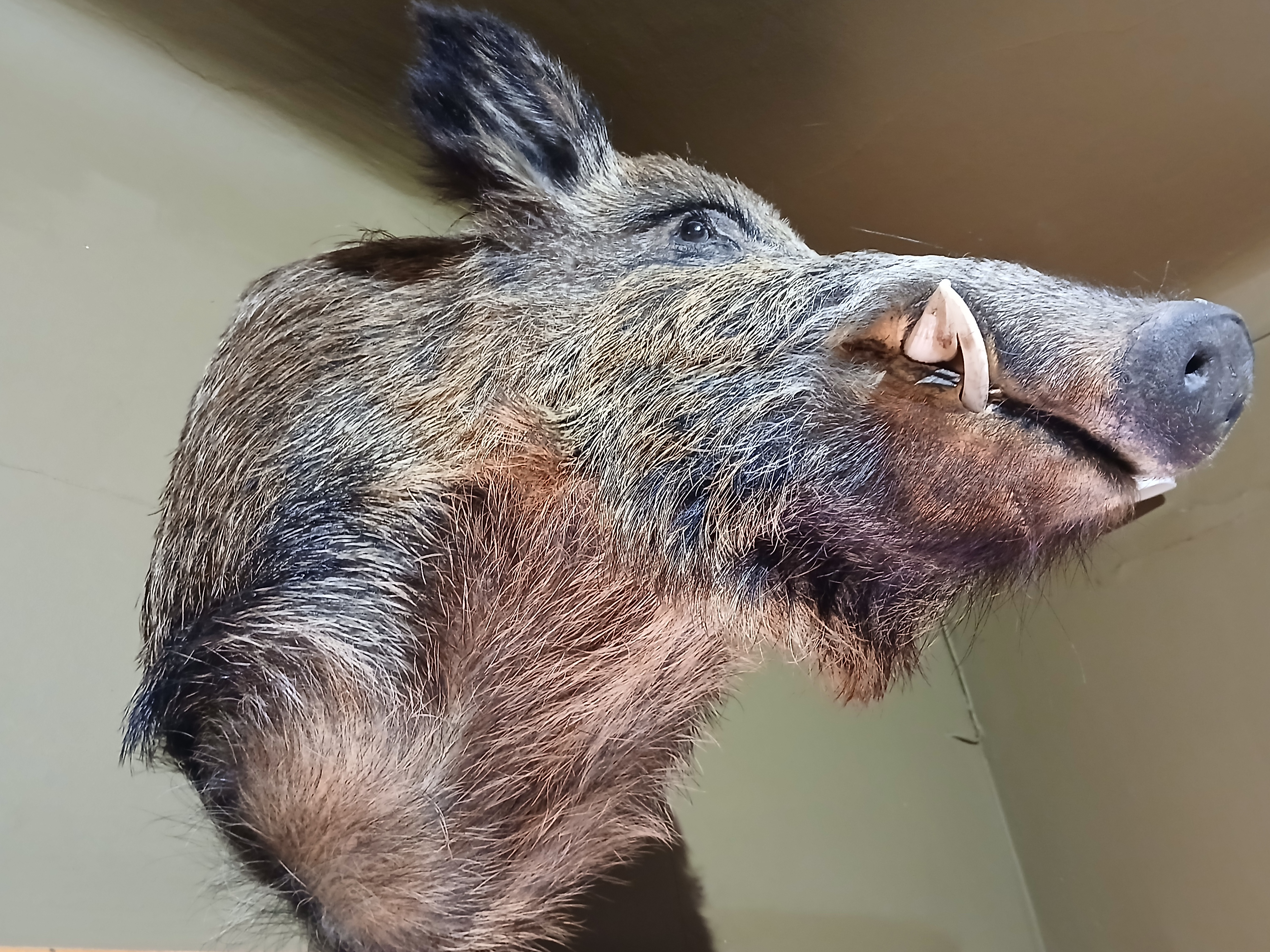 Jeden z elemtów wystawy głowa odyńca wisząca na ścianie