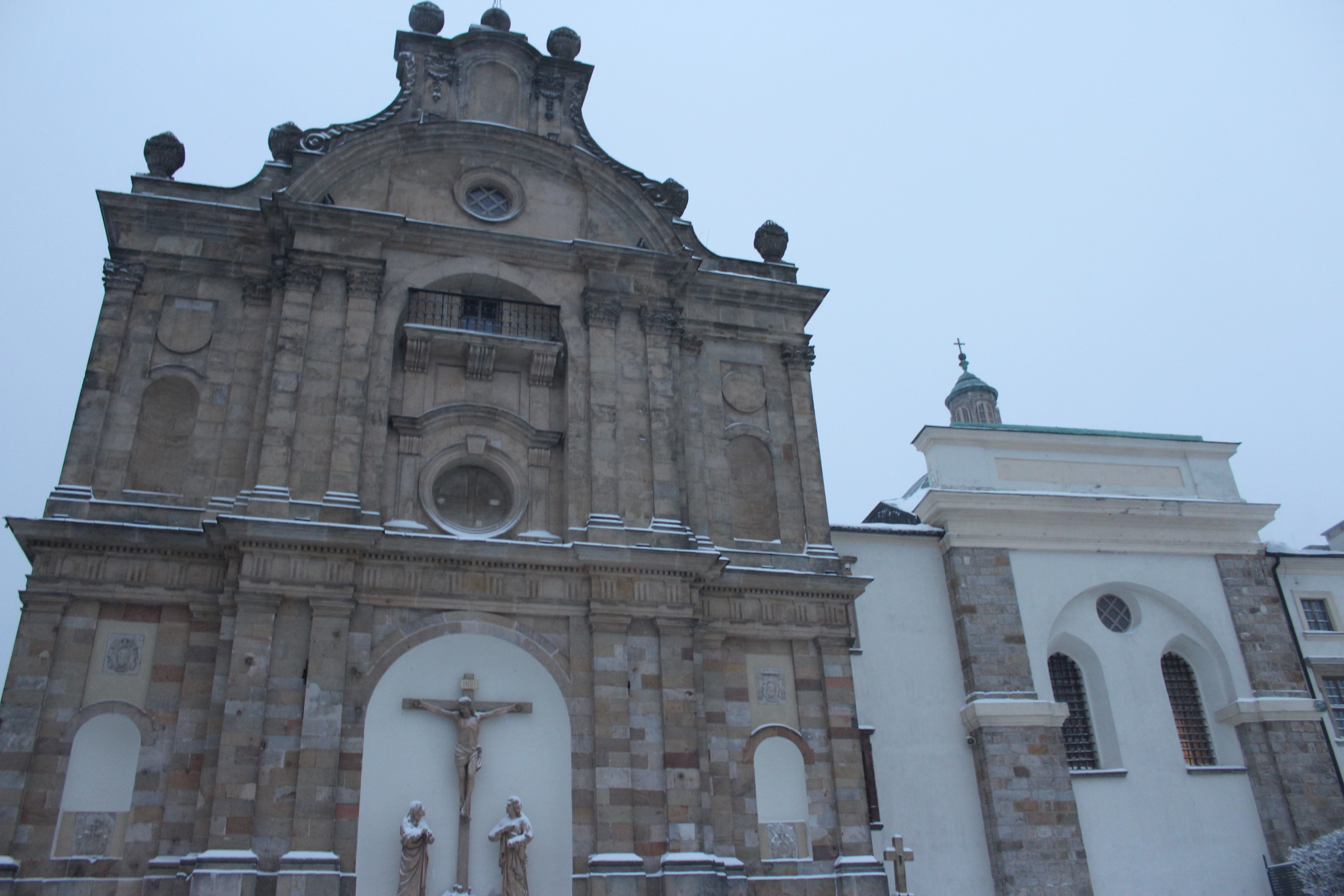 Na pierwszym planie kiedyś znajdowal się kościół romański - pozostało po nim wgłębienie